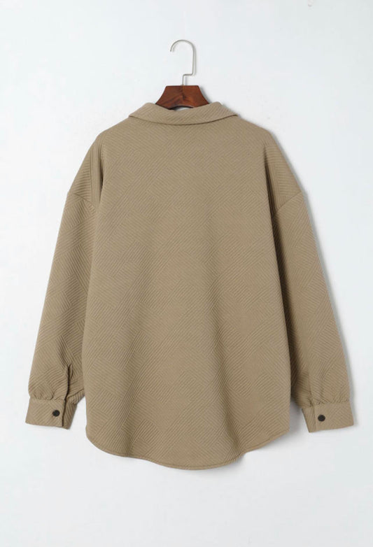 Khaki Solid Textured Flap Pocket Buttoned Shacket
