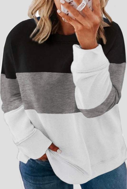 White Crew Neck Colorblock Plus Size Sweatshirt